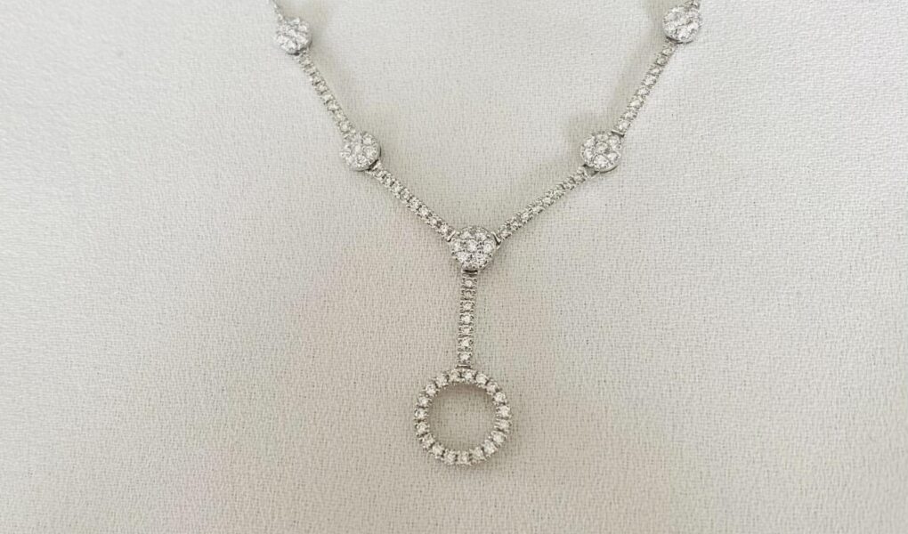 | Collier neuf en or blanc 18 carats pavé de diamants taille brillant. |