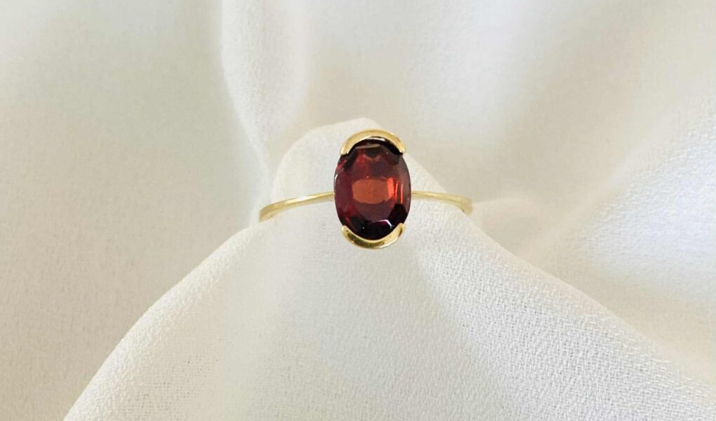 Grenat by MaxenceLeave a Comment on Grenat Prix : 320 euros Réf. : – b 2362 – Poids : 1,65 g Taille : 56 Bague en or jaune 18 carats sertie d’un grenat.